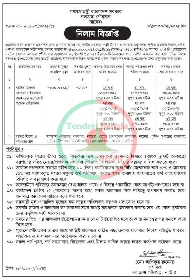 Title: পুরাতন ভবন নিলাম বিজ্ঞপ্তি