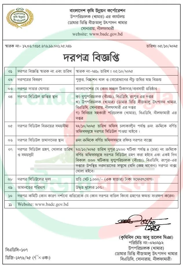 Title: মাছ বিক্রয়ের নিলাম দরপত্র বিজ্ঞপ্তি