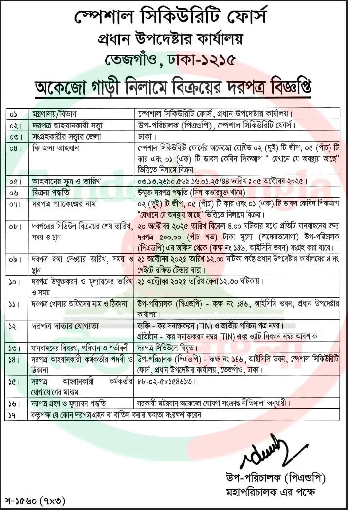 Title: অকেজো গাড়ী নিলামে বিক্রয়ের দরপত্র বিজ্ঞপ্তি