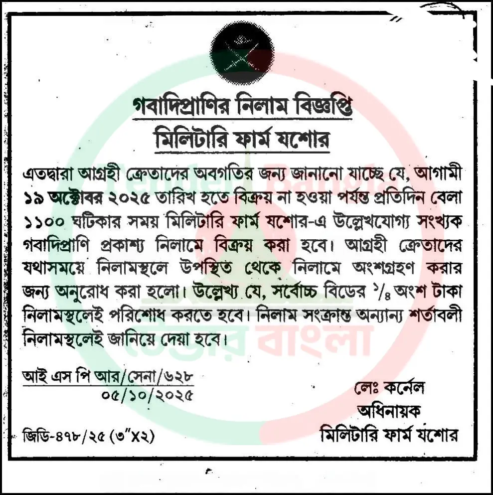 Title: গবাদিপ্রাণির নিলাম বিজ্ঞপ্তি