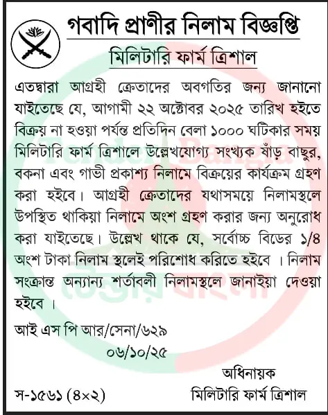 Title: গবাদি প্রাণীর নিলাম বিজ্ঞপ্তি