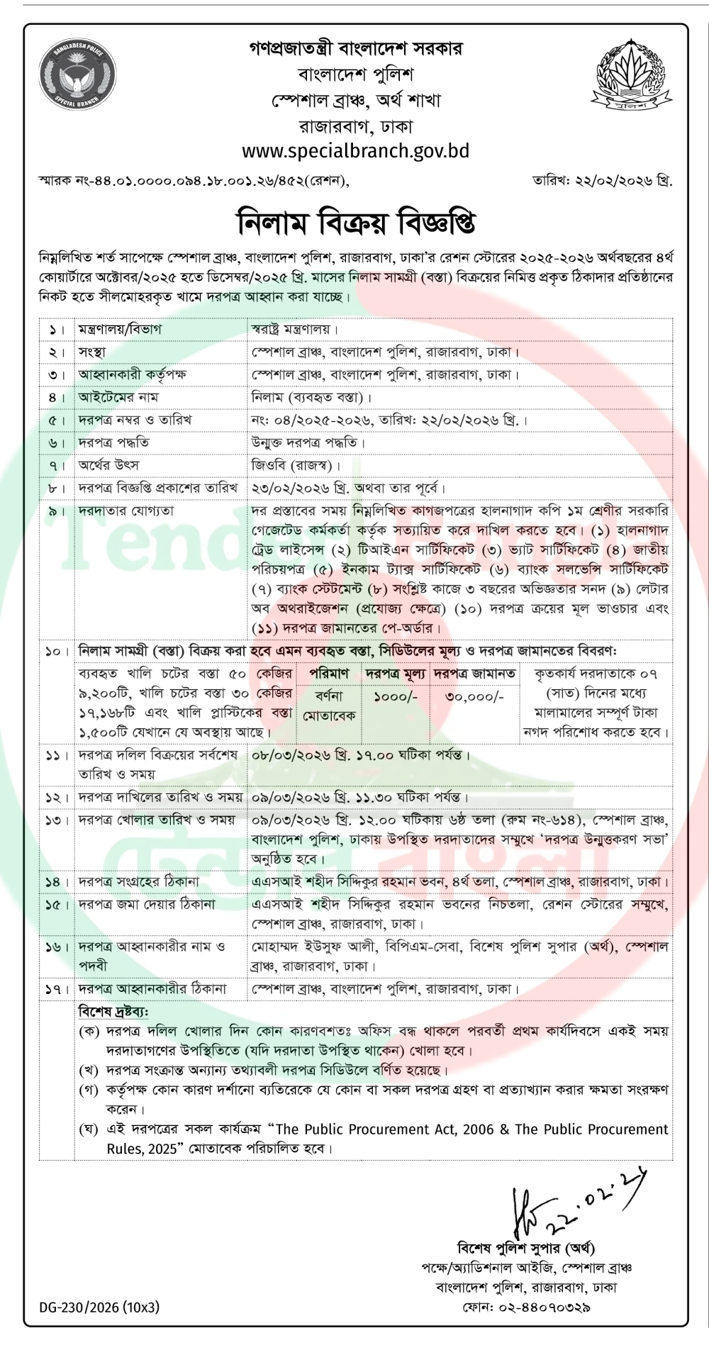 নিলাম ও বিক্রয় বিজ্ঞপ্তি