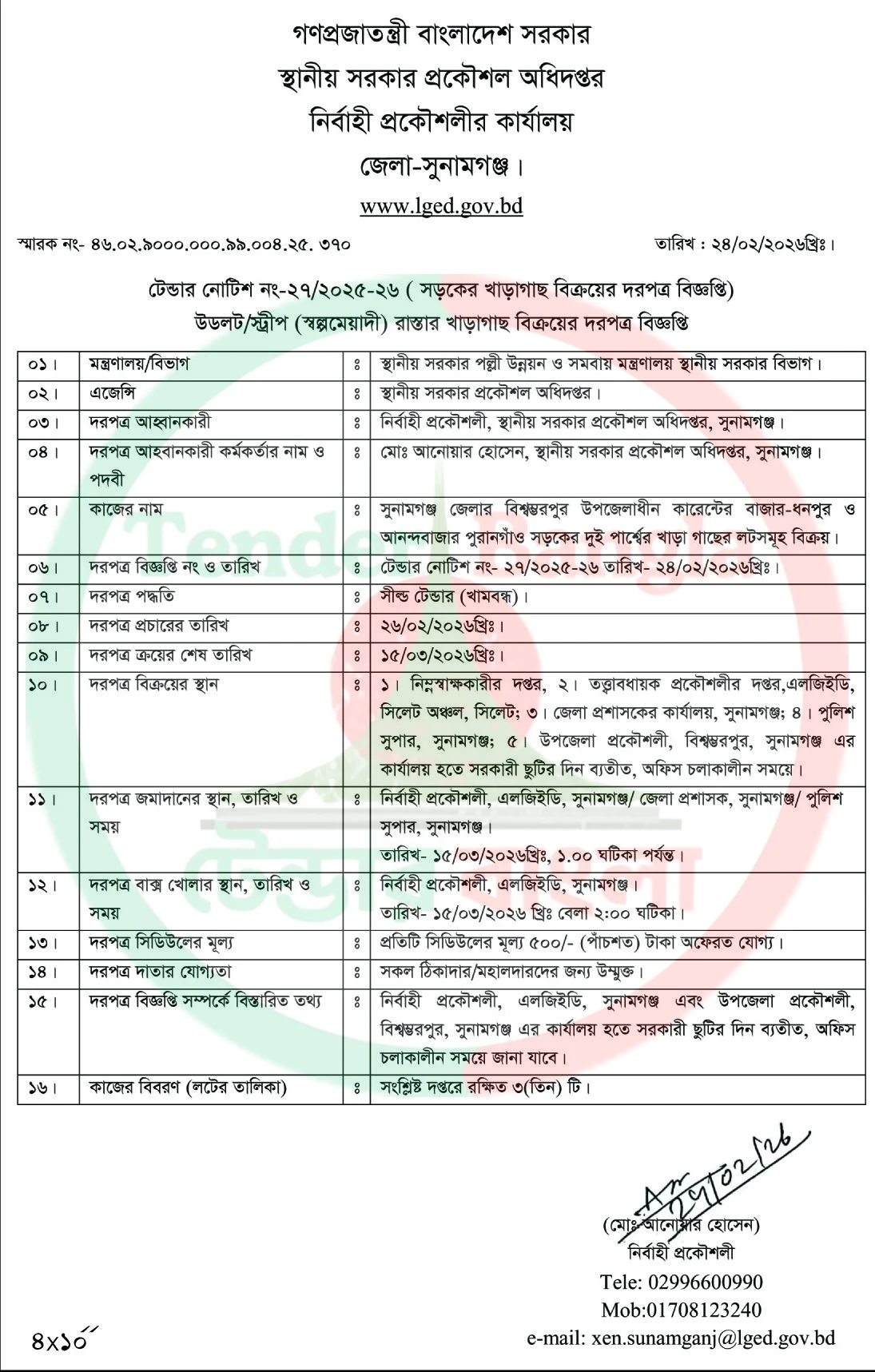 Title: বিভিন্ন খাড়া গাছ বিক্রয়ের দরপত্র বিজ্ঞপ্তি এলজিডি