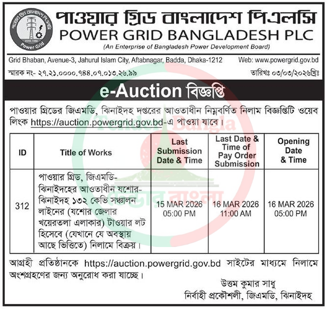 Title: বিভিন্ন মালামাল ই অকশন বিজ্ঞপ্তি