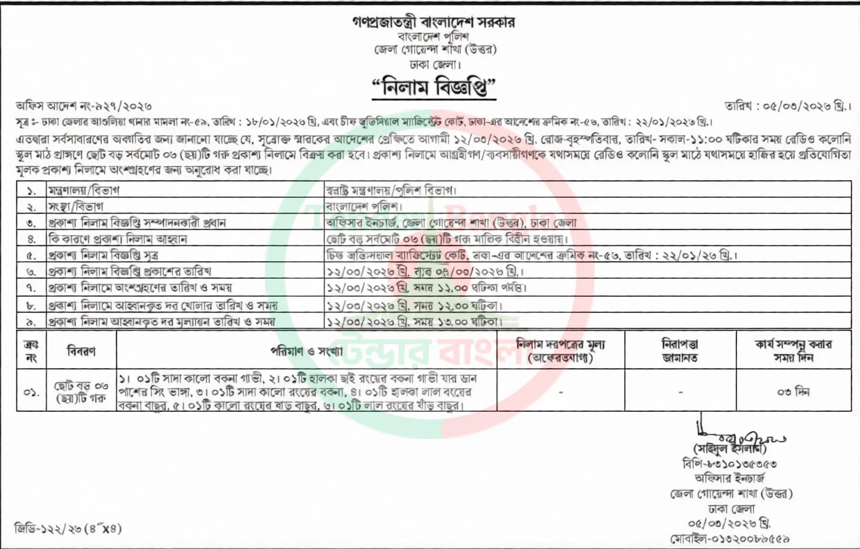Title: গাভী ,বাছুর নিলাম বিজ্ঞপ্তি