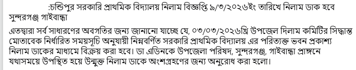 Title: প্রাথমিক বিদ্যালয় নিলাম বিজ্ঞপ্তি