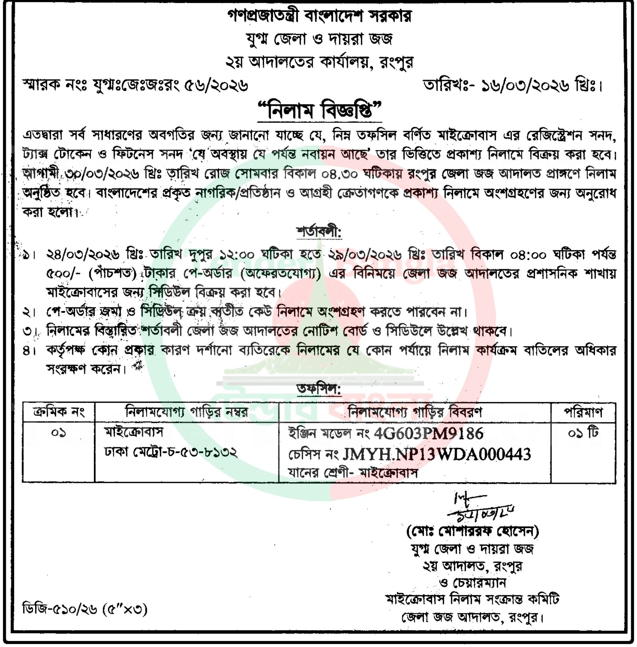 Title: মাইক্রোবাস নিলাম বিজ্ঞপ্তি