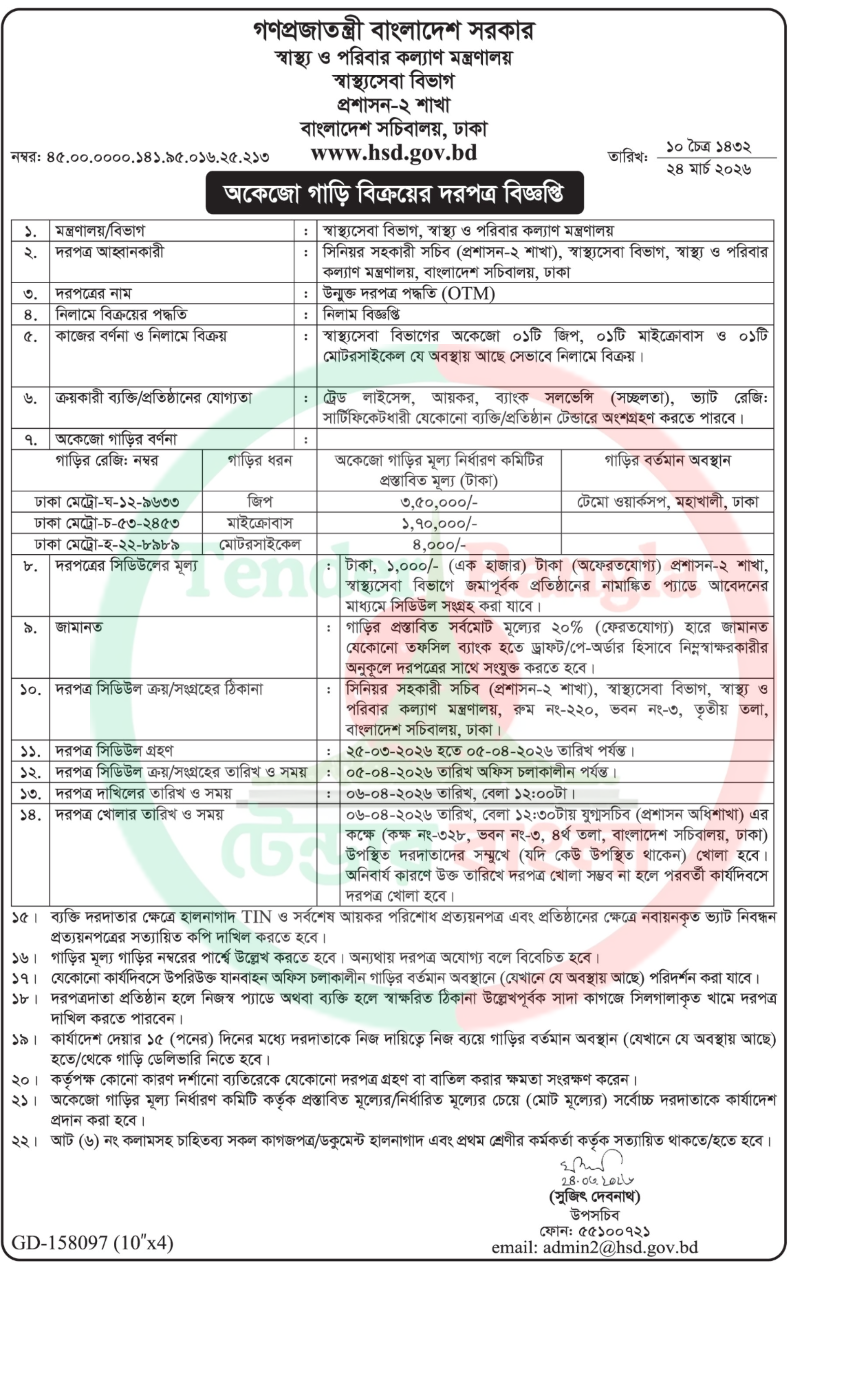 Title: অকেজো গাড়ি বিক্রয়ের দরপত্র বিজ্ঞপ্তি
