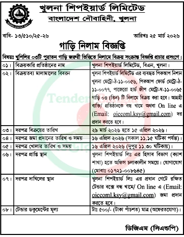 Title: পুরাতন গাড়ি নিলাম বিজ্ঞপ্তি খুলনা শিপইয়ার্ড