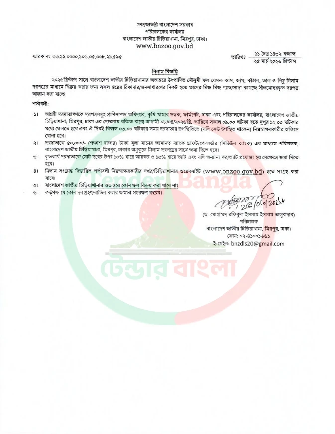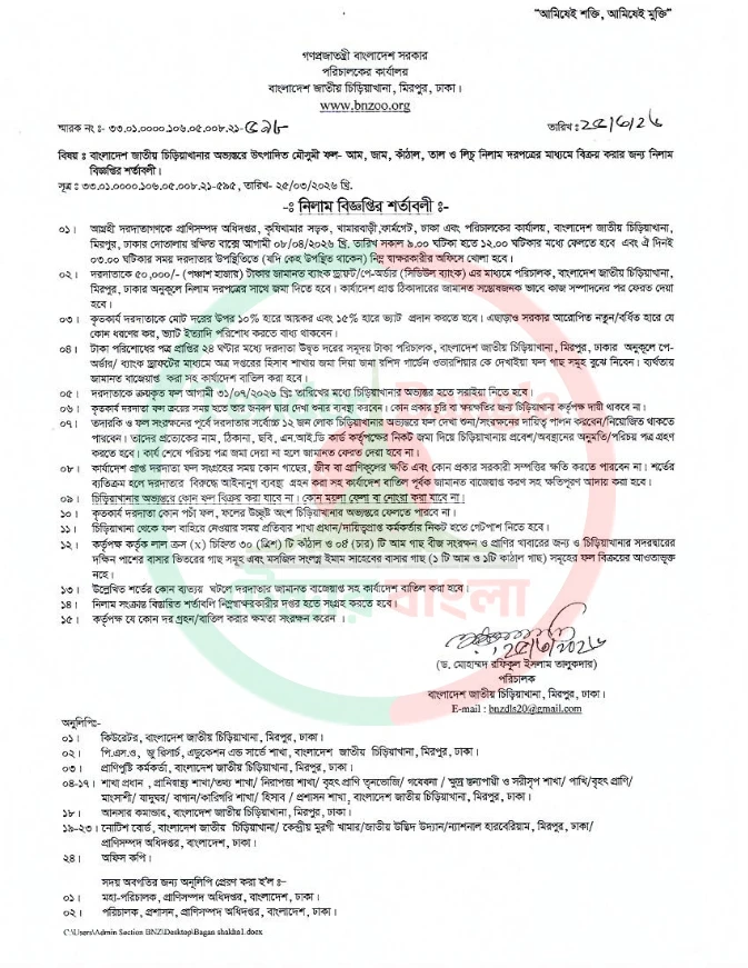 Title: বিভিন্ন ধরনের ফল নিলাম বিজ্ঞপ্তি জাতীয় চিড়িয়াখানা মিরপুর