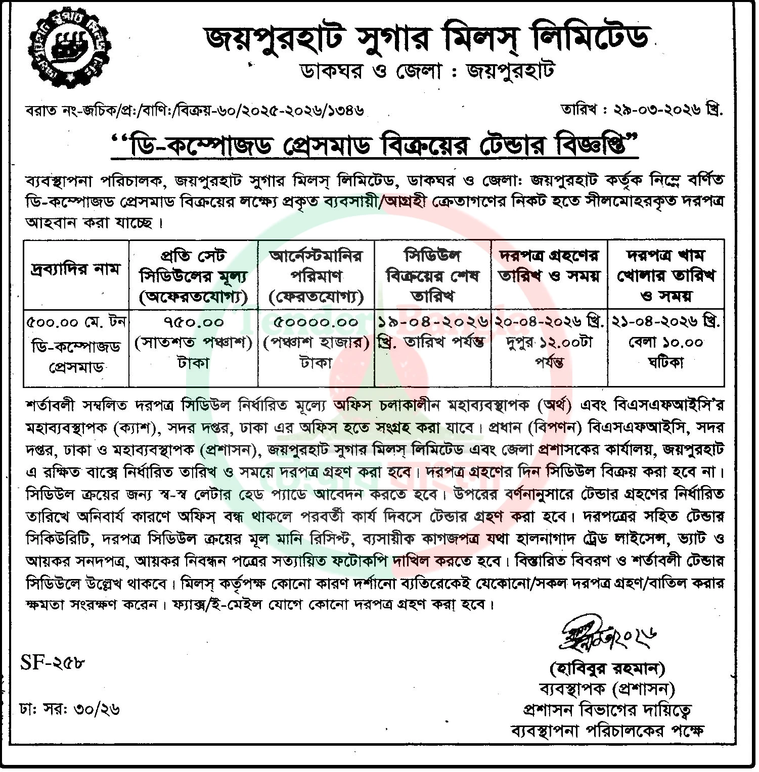 Title: প্রেসমাড বিক্রয়ের টেন্ডার বিজ্ঞপ্তি