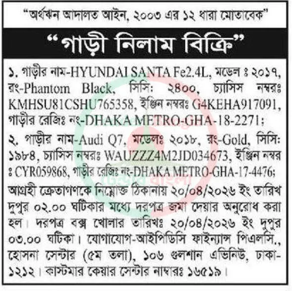 Title: গাড়ী নিলাম বিজ্ঞপ্তি পূবালী ব্যাংক