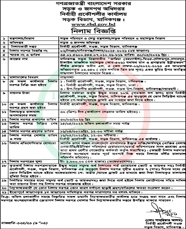 Title: গাছপালা নিলাম বিজ্ঞপ্তি সড়ক বিভাগ