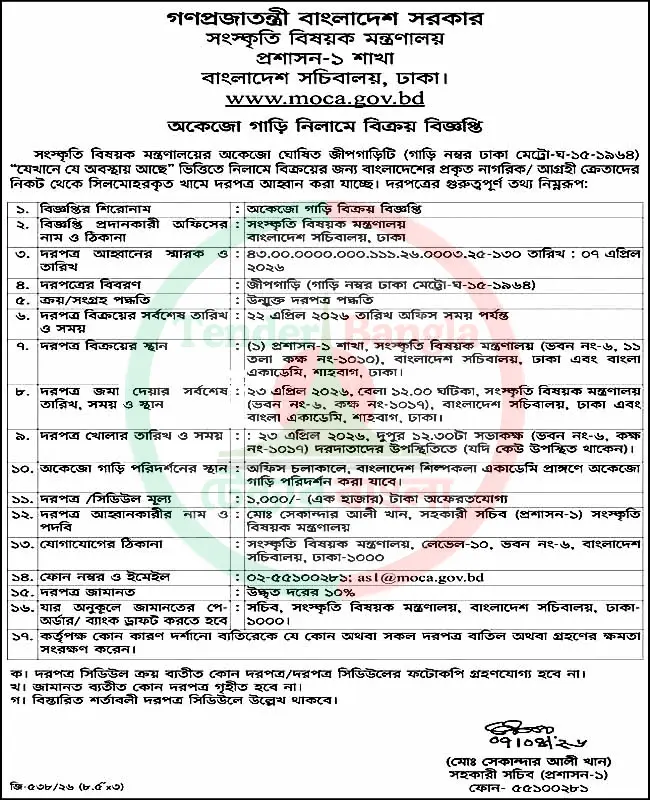 Title: অকেজো গাড়ি নিলাম বিক্রয় বিজ্ঞপ্তি সচিবালয়