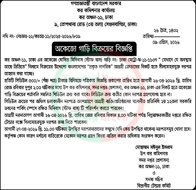 Title: অকেজো গাড়ি বিক্রয়ের নিলাম বিজ্ঞপ্তি