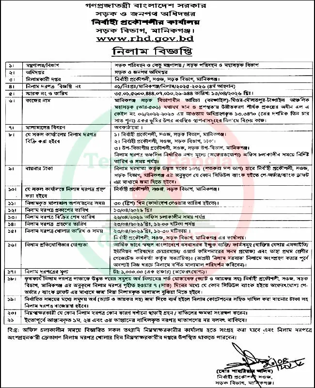 Title: বিভিন্ন স্থাপনা নিলাম বিজ্ঞপ্তি সড়ক বিভাগ