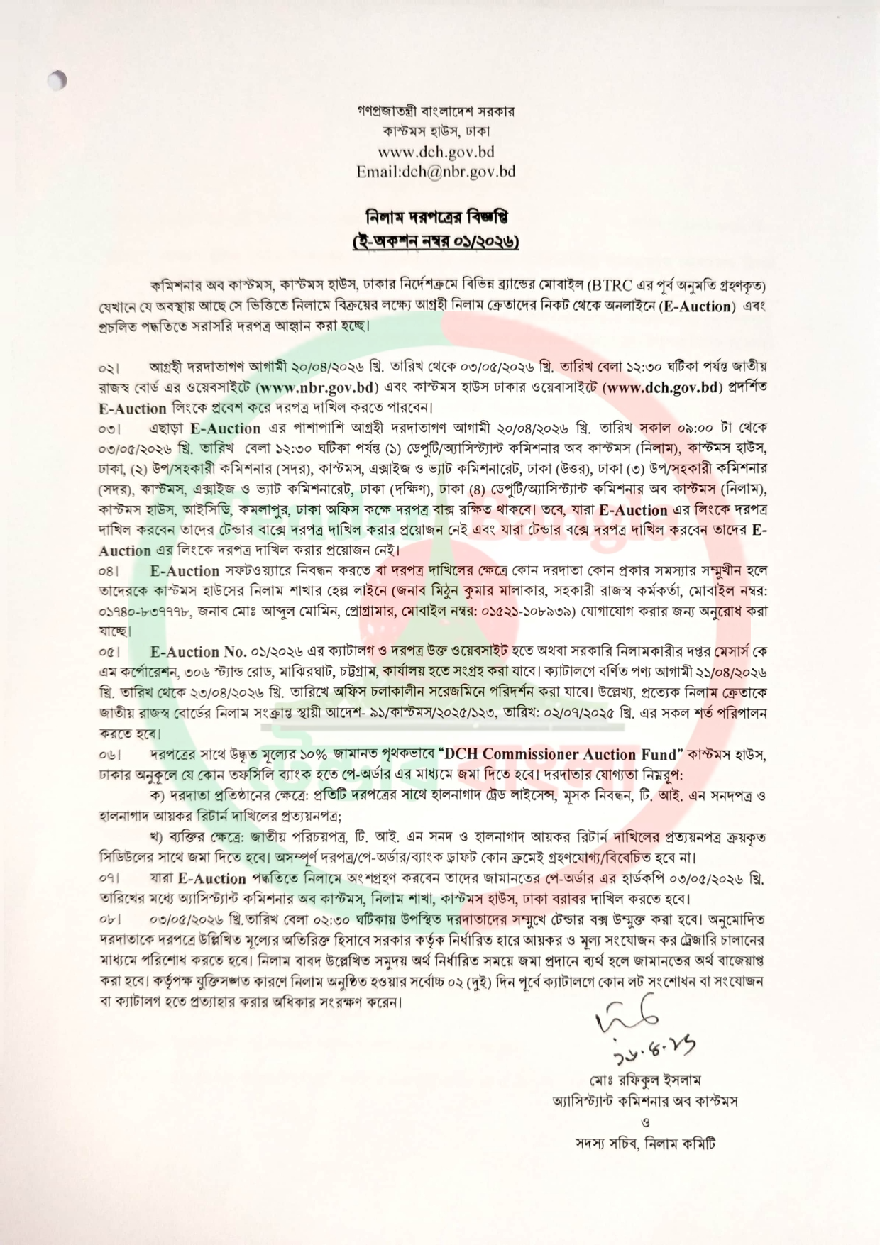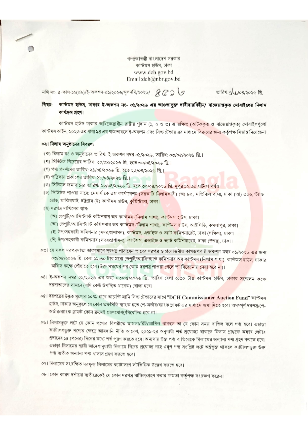 Title: ঢাকা কাস্টম্স হাউজে দাবীদারবিহীন/বাজেয়াপ্তকৃত বিভিন্ন ব্যান্ডের মোবাইল নিলামে (ই-অকশনে) বিক্রয় বিজ্ঞপ্তি