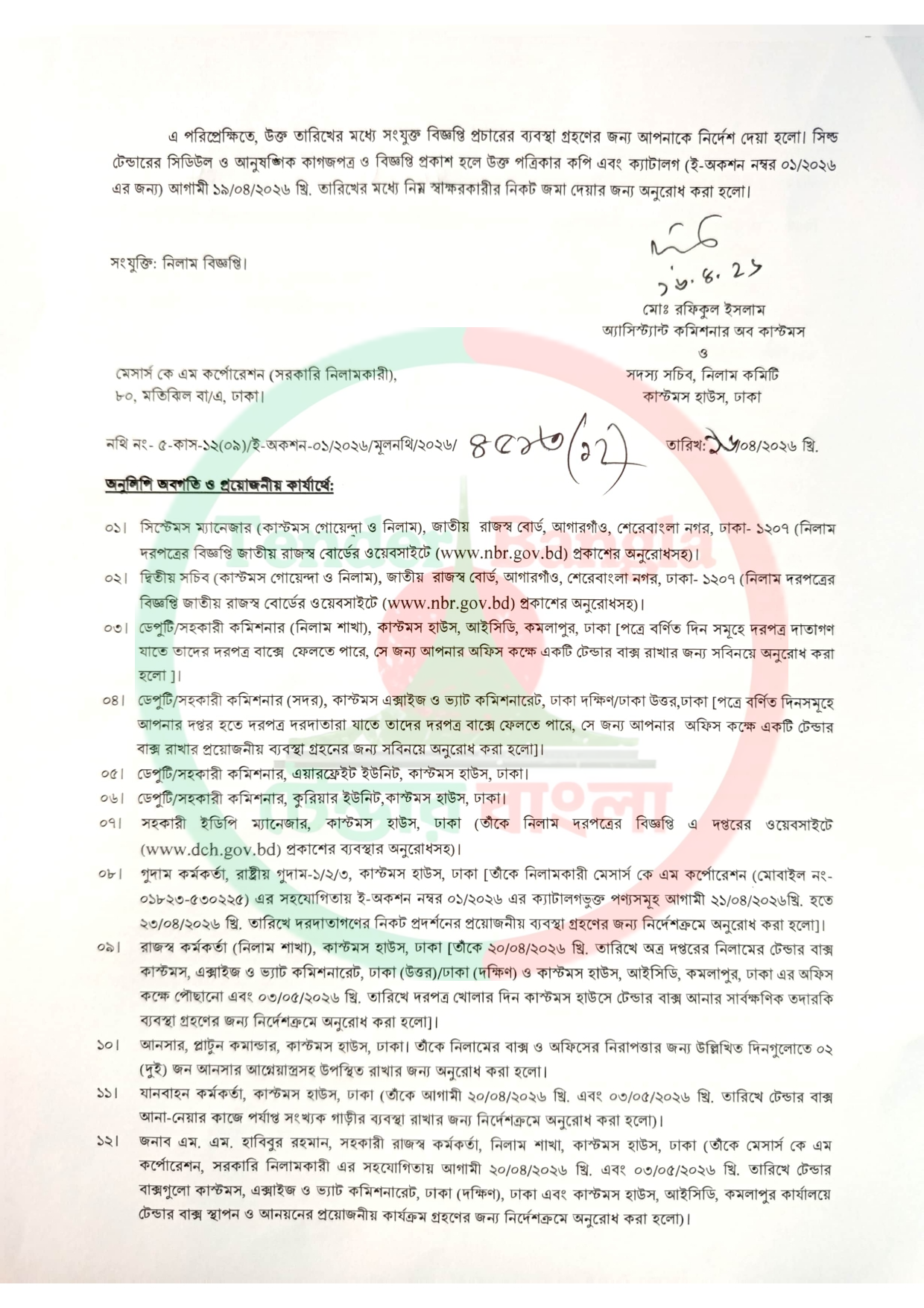 নিলাম ও বিক্রয় বিজ্ঞপ্তি