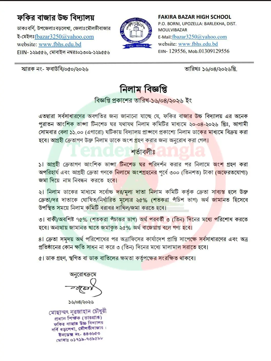 Title: পুরাতন টিনশেড ঘর নিলাম বিজ্ঞপ্তি