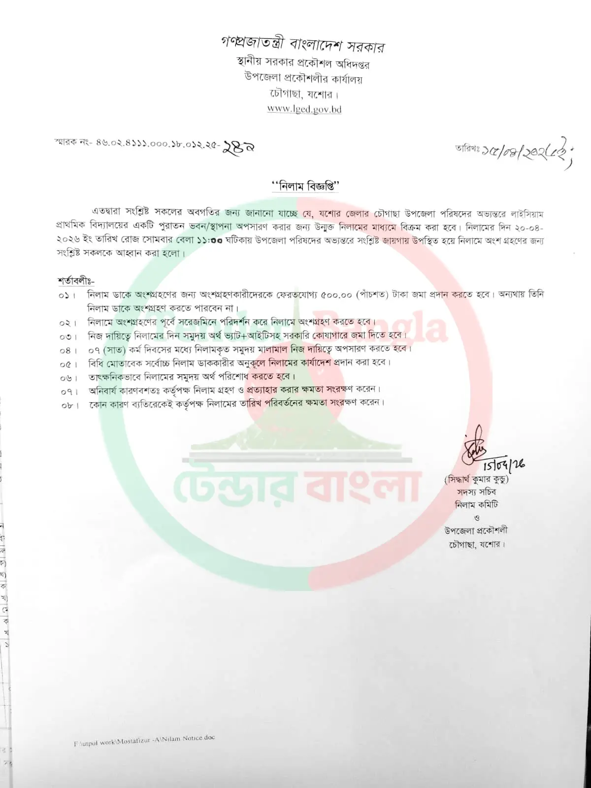 Title: পুরাতন স্থাপনা/ঘর নিলাম বিজ্ঞপ্তি