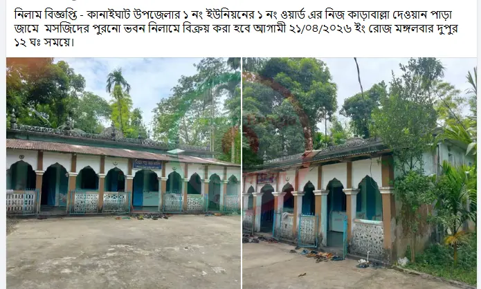 Title: পুরাতন মসজিদ নিলাম বিজ্ঞপ্তি কানাইঘাট