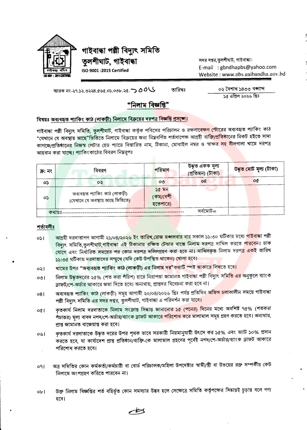 Title: প্যাকিং কাঠ নিলাম বিজ্ঞপ্তি পল্লী বিদ্যুৎ সমিতি