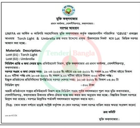 Title: টর্চ লাইট ও ছাতা ক্রয়ের দরপত্র বিজ্ঞপ্তি