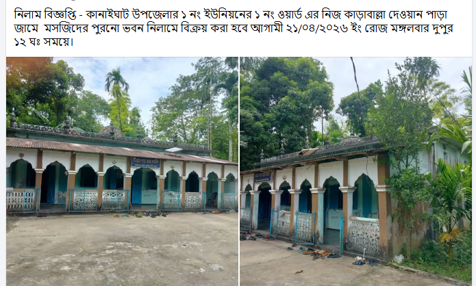 Title: পুরাতন মসজিদ নিলাম বিজ্ঞপ্তি কানাইঘাট