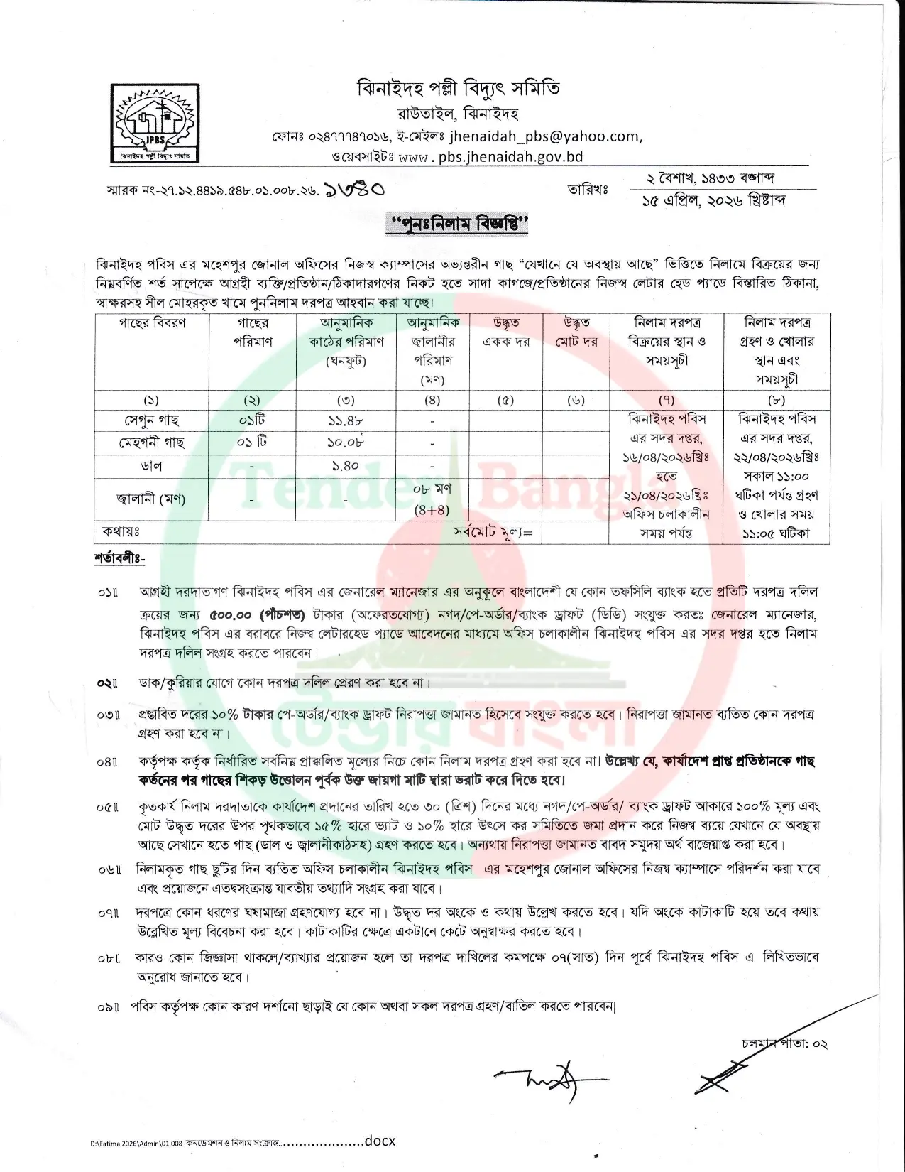 Title: বিভিন্ন গাছ পুনঃ নিলাম বিজ্ঞপ্তি পল্লী বিদ্যুৎ