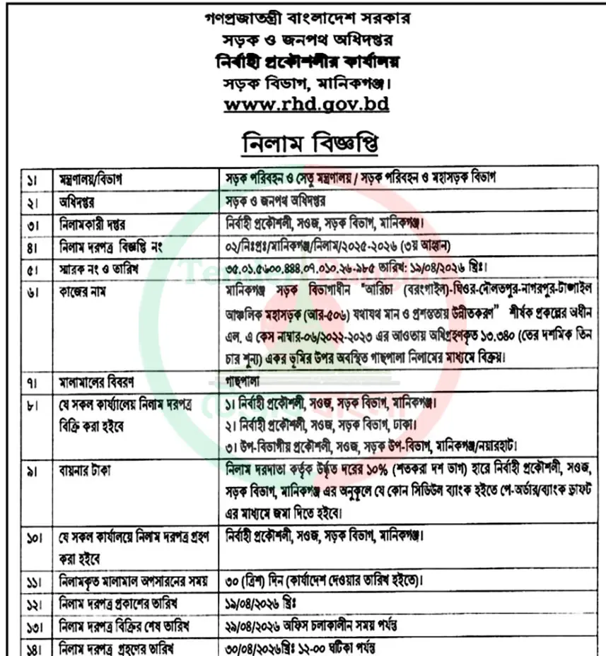 Title: গাছপালা নিলাম বিজ্ঞপ্তি সওজ