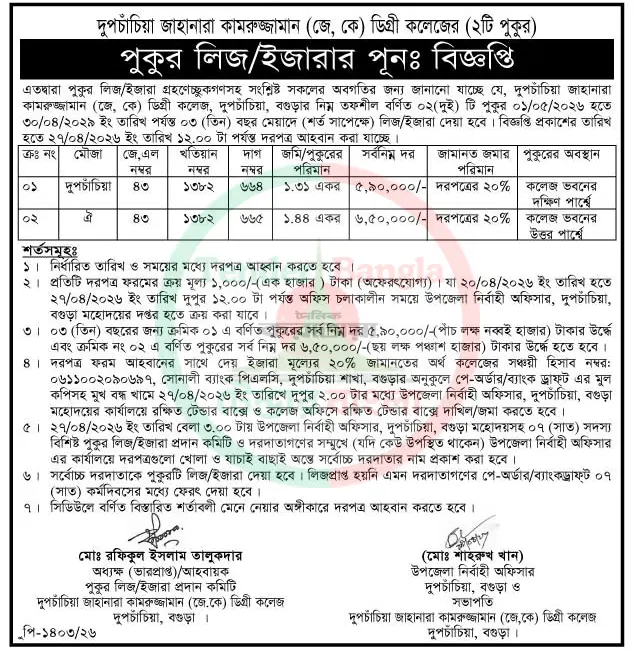 Title: পুকুর লিজ/ইজারা বিজ্ঞপ্তি
