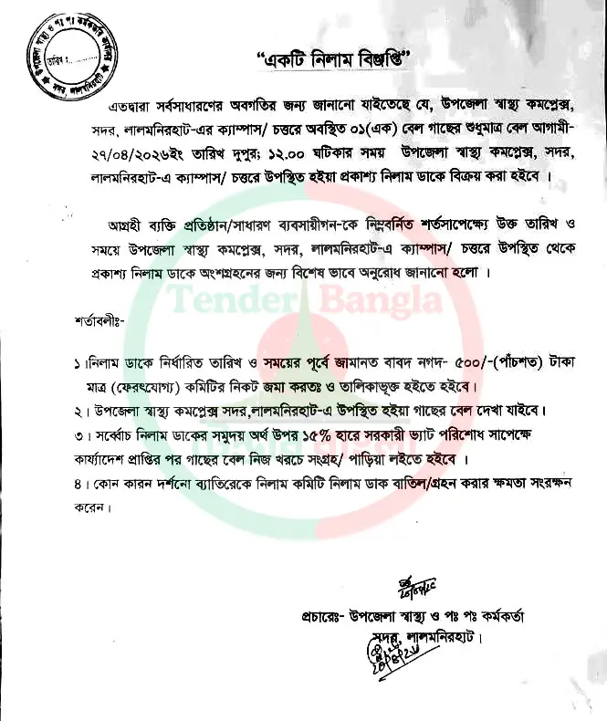 Title: বেল গাছ নিলাম বিজ্ঞপ্তি