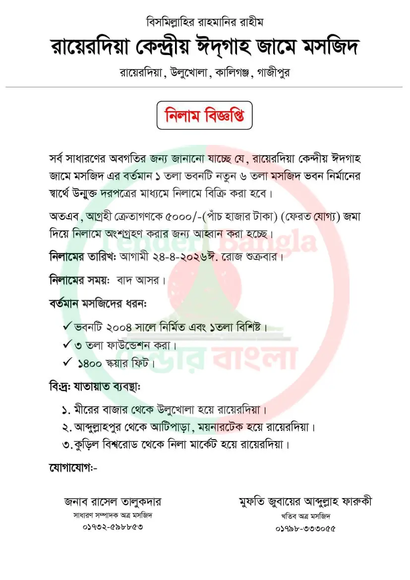 Title: পুরাতন মসজিদ নিলাম বিজ্ঞপ্তি