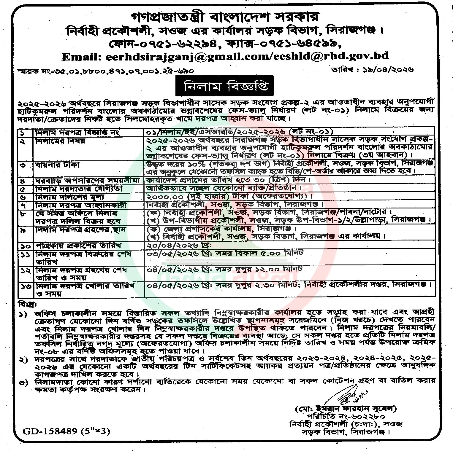 নিলাম ও বিক্রয় বিজ্ঞপ্তি