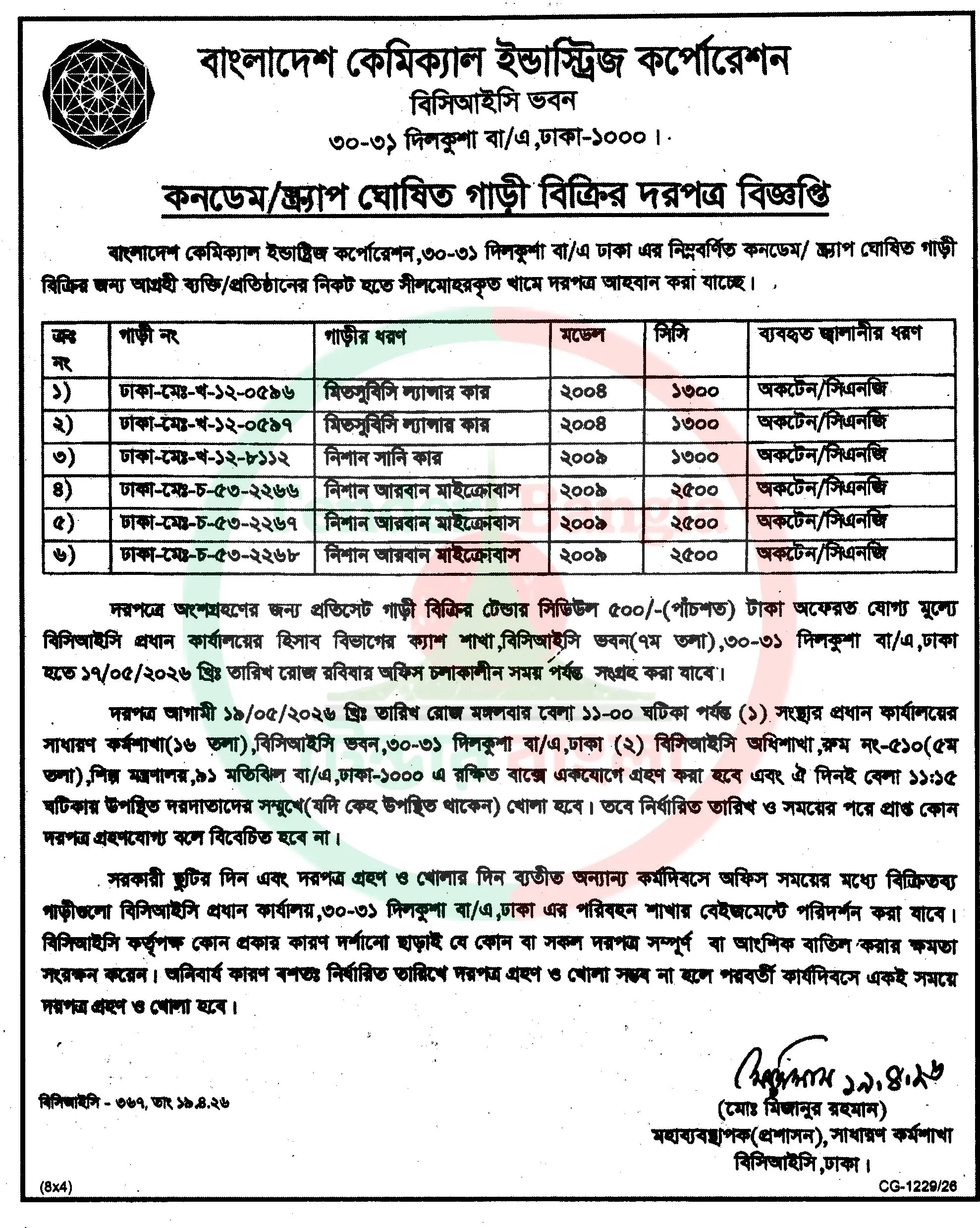 Title: স্ক্র্যাপ ঘোষিত গাড়ী বিক্রির দরপত্র