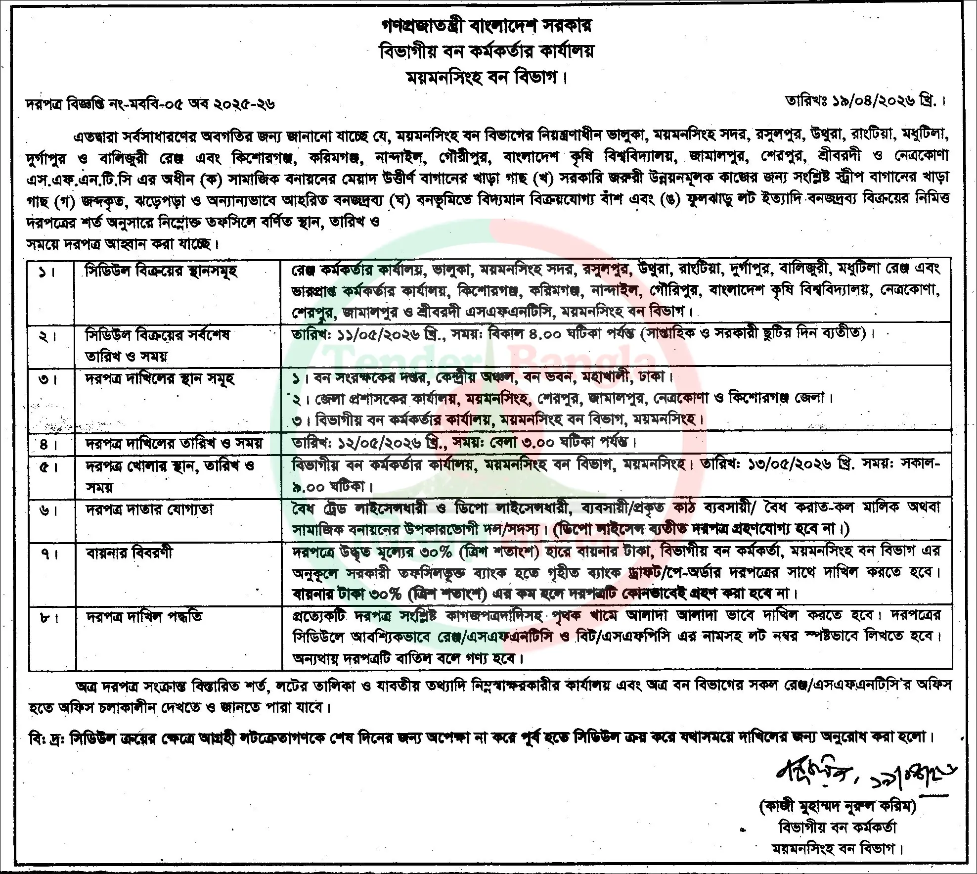Title: গাছপালা , বাঁশ, ঝাড়ু ইত্যাদি বিক্রয়ের দরপত্র বিজ্ঞপ্তি