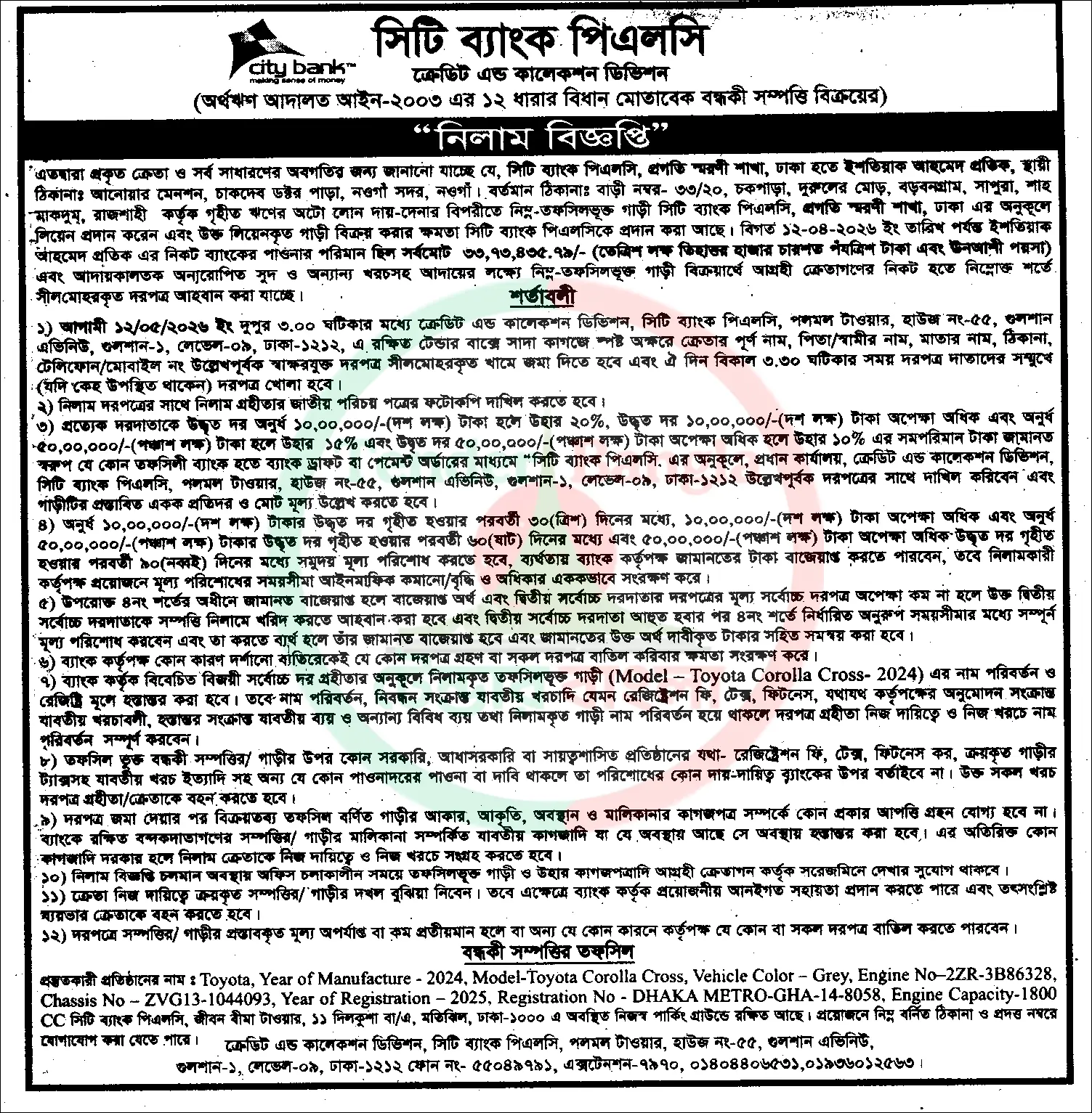 Title: অর্ধঋণ আদালতে গাড়ি নিলাম বিজ্ঞপ্তি