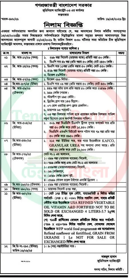 Title: বিভিন্ন ধরনের মালামাল নিলাম বিজ্ঞপ্তি