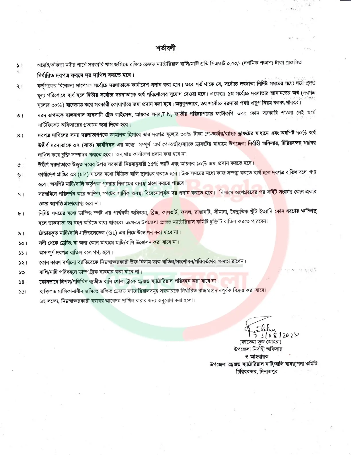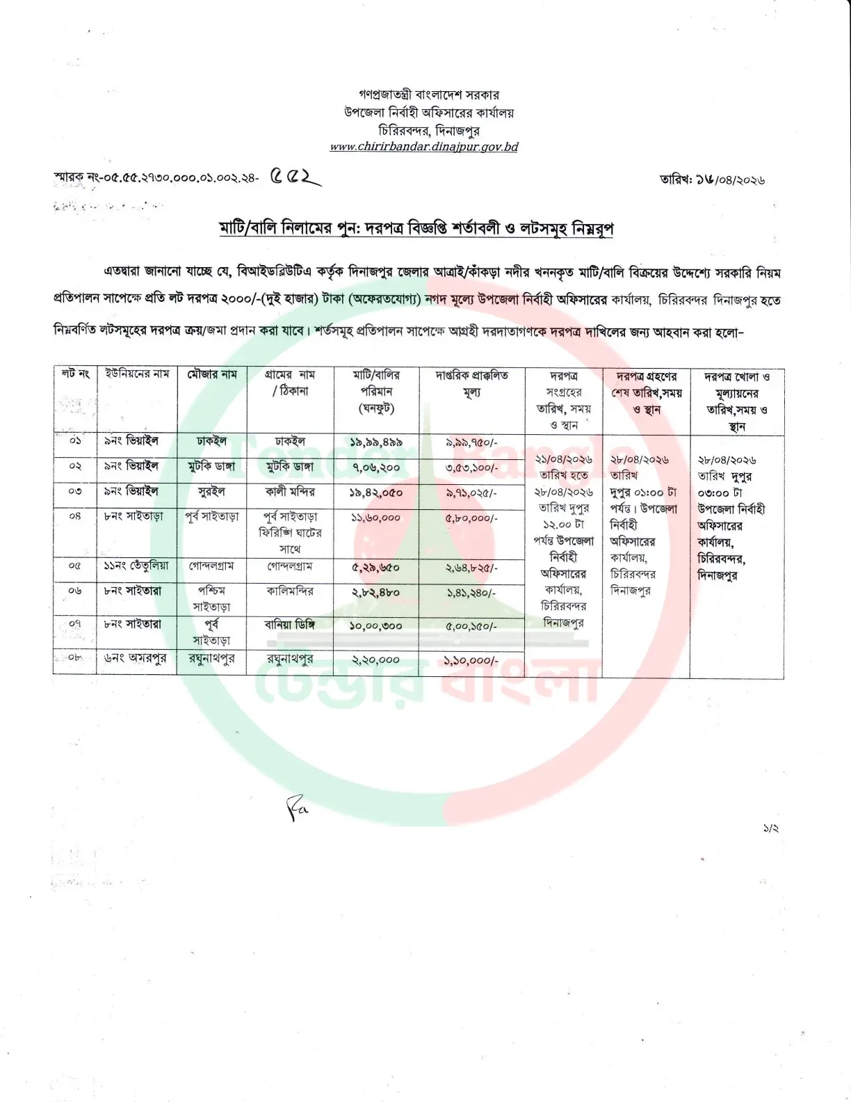Title: মাটি/বালি নিলাম বিজ্ঞপ্তি