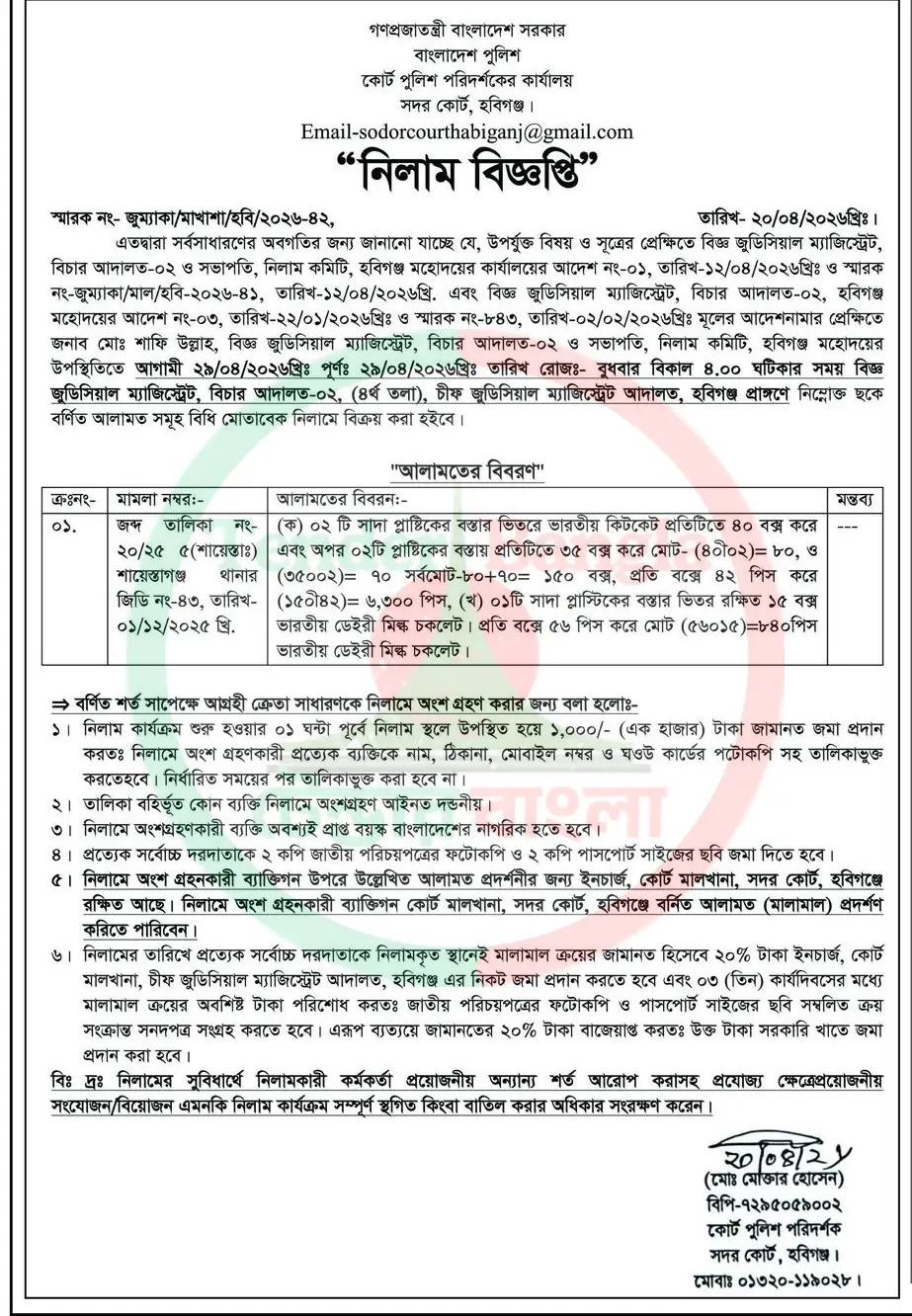 Title: বিভিন্ন ধরনের মালামাল নিলাম বিজ্ঞপ্তি