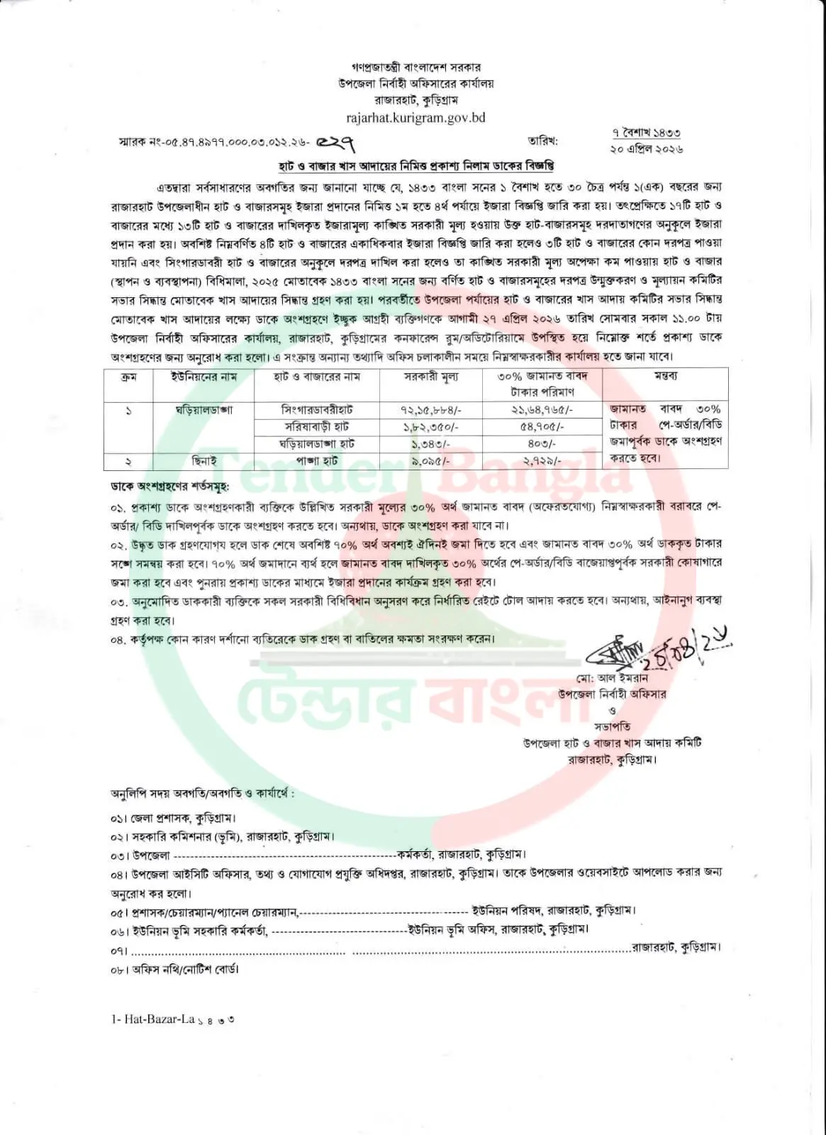 Title: হাট ও বাজার খাস আদায়ের প্রকাশ্য নিলাম বিজ্ঞপ্তি