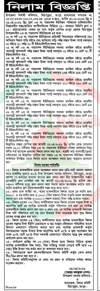 Title: বিভিন্ন গাছ নিলাম বিজ্ঞপ্তি মিঠাপুকুর
