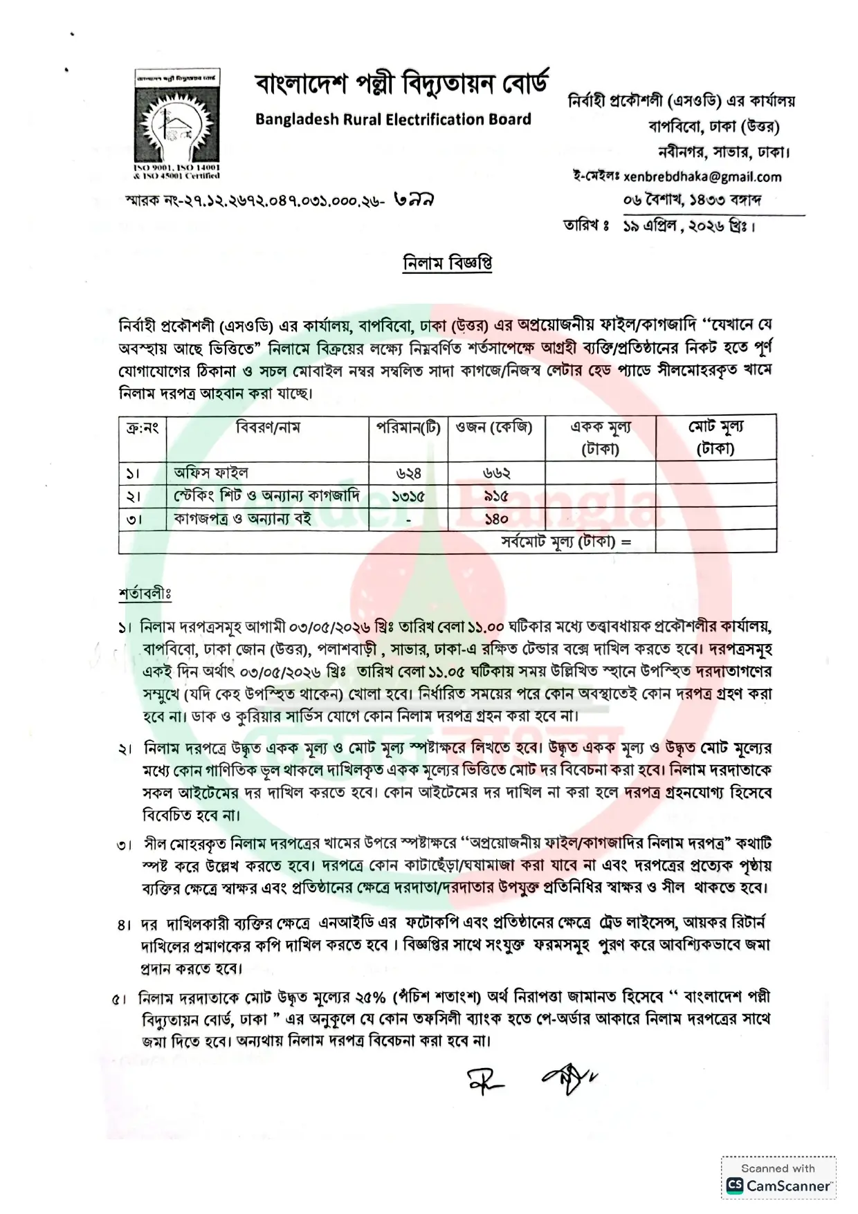 Title: বিভিন্ন মালামাল নিলাম বিজ্ঞপ্তি পল্লী বিদ্যুতায়ন বোর্ড