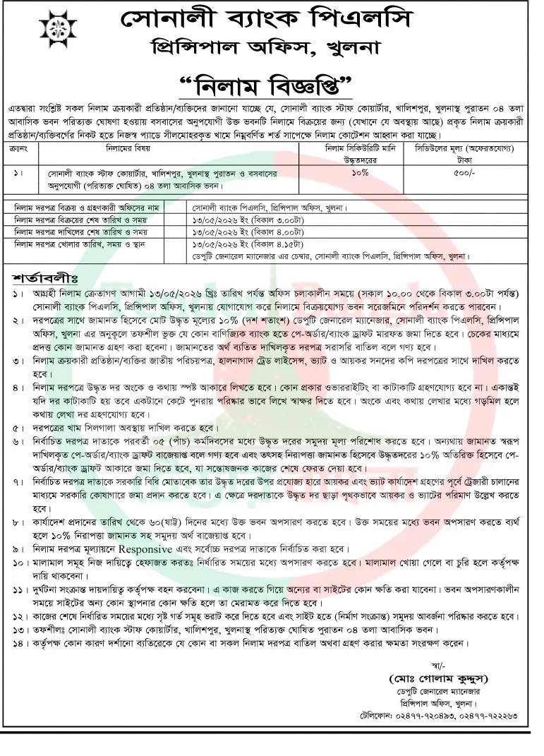 Title: পুরাতন ভবন নিলাম বিজ্ঞপ্তি সোনালী ব্যাংক