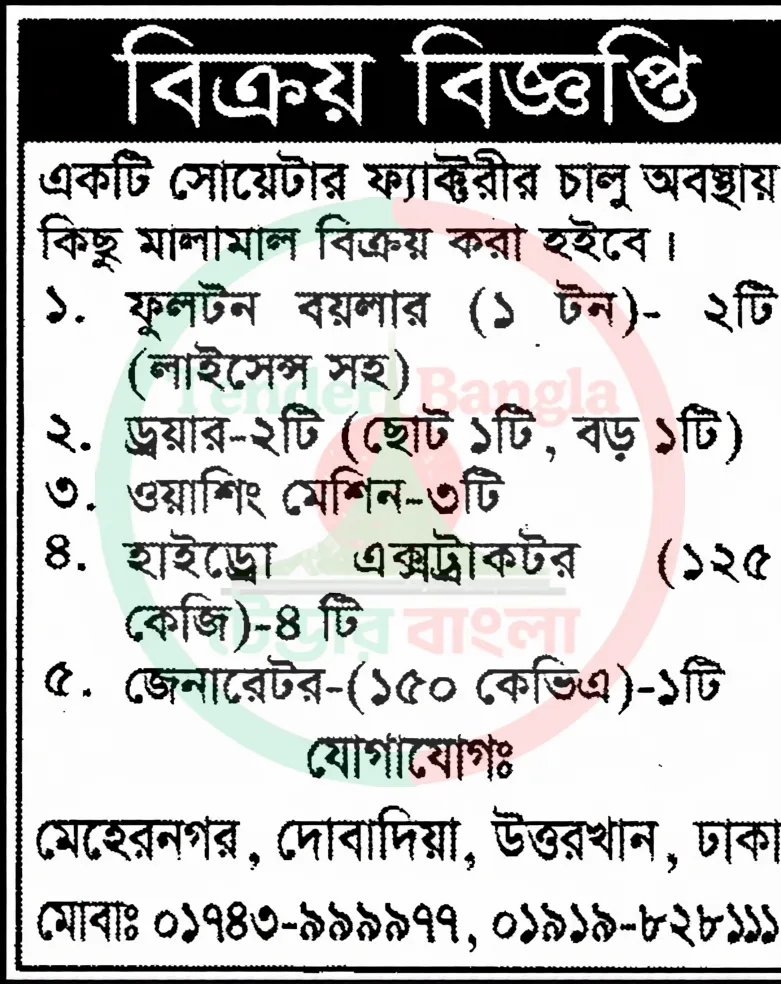 Title: বিভিন্ন ধরনের মালামাল নিলাম বিজ্ঞপ্তি