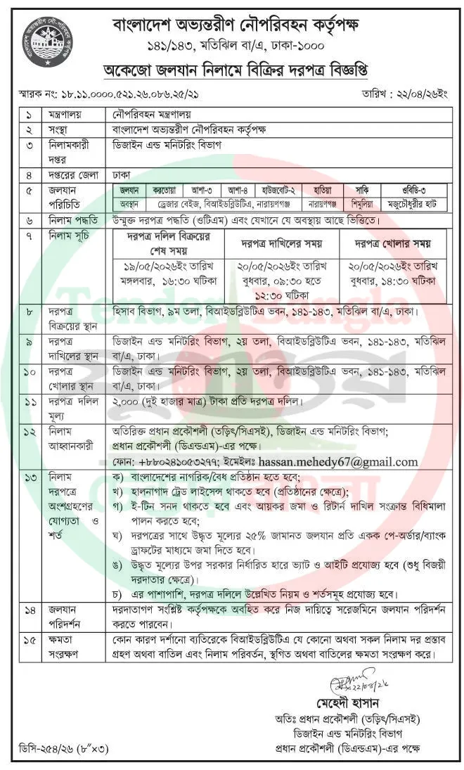 Title: অকেজো জলযান নিলাম বিজ্ঞপ্তি