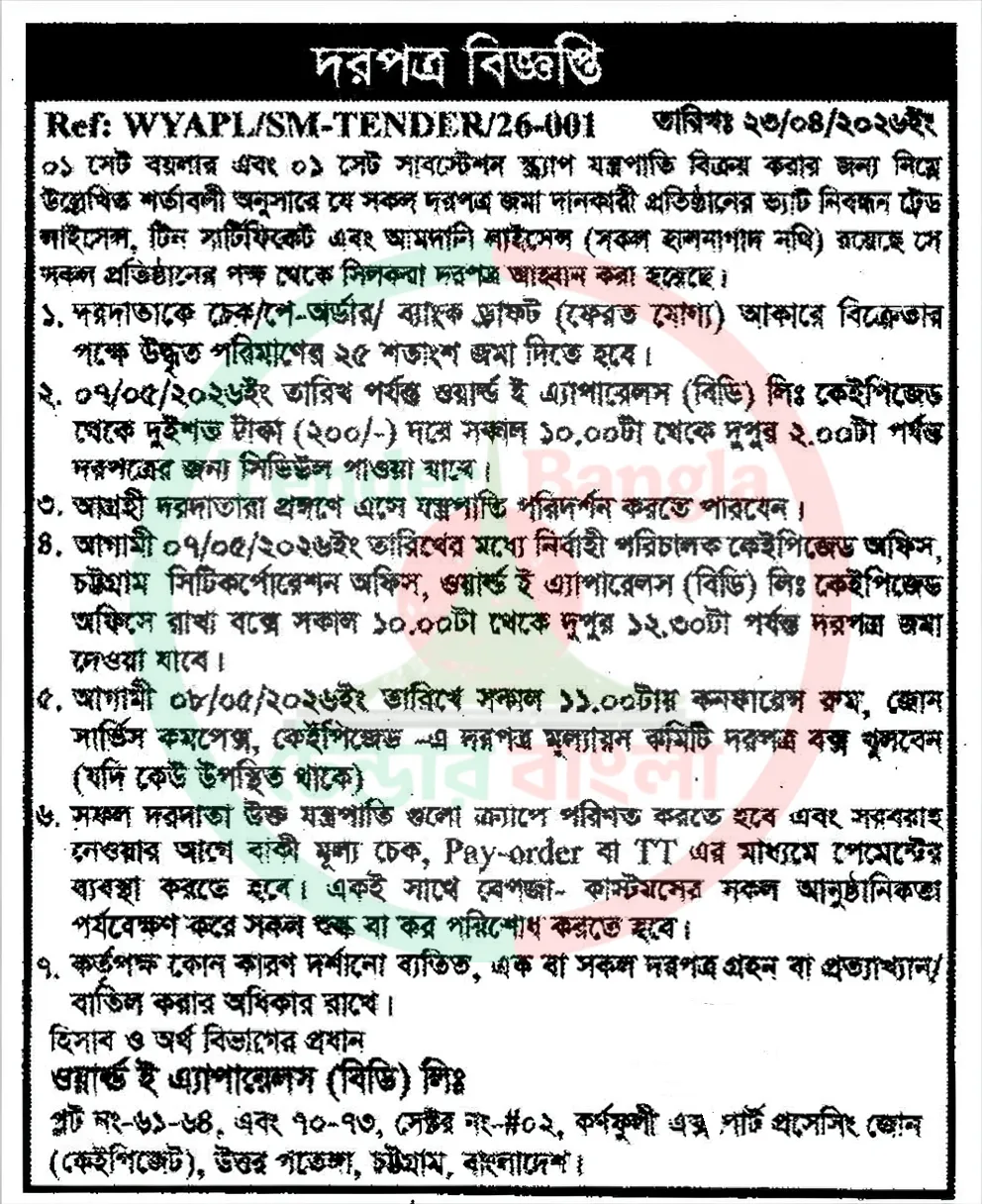 Title: বিভিন্ন ধরনের স্ক্র্যাপ মালামাল বিক্রয় বিজ্ঞপ্তি