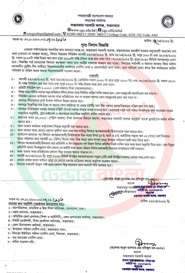 Title: পুরাতন ভবন নিলাম বিজ্ঞপ্তি