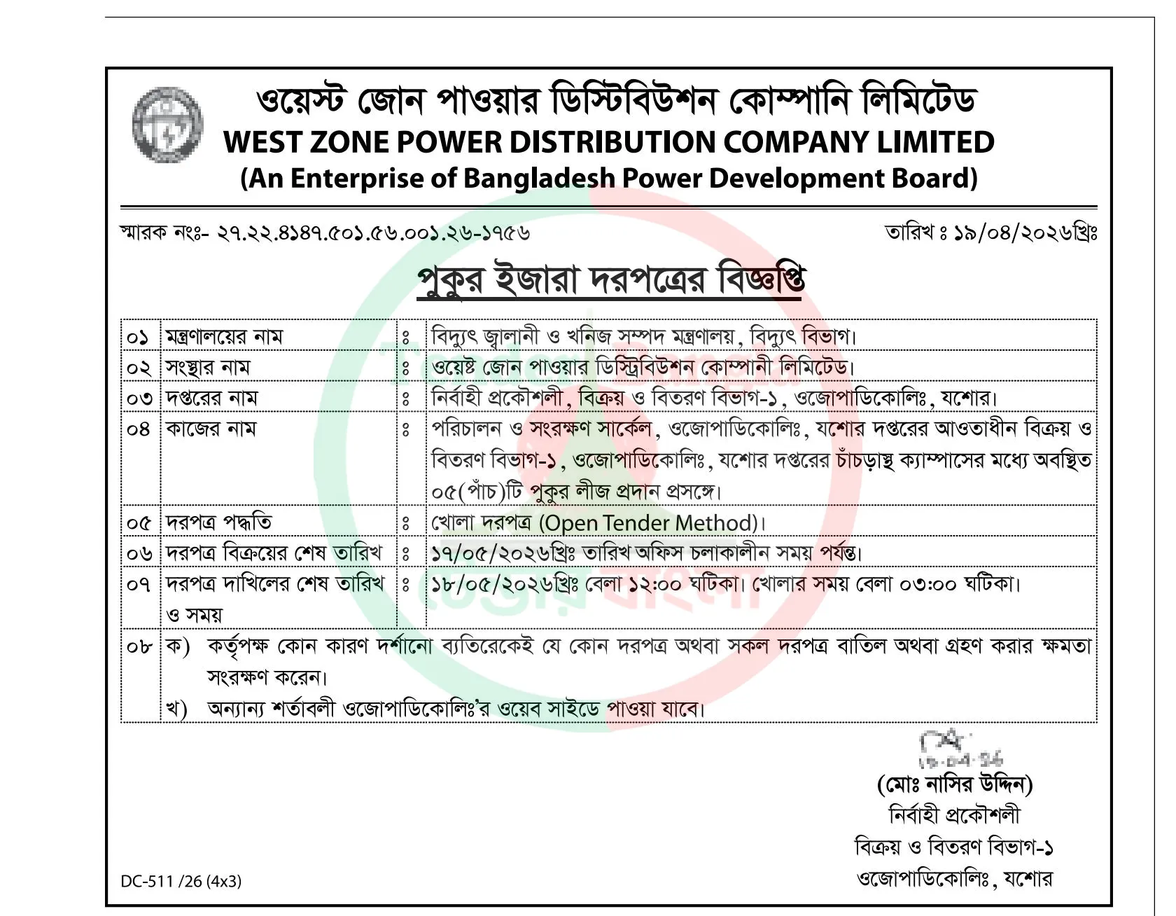 Title: পুকুর ইজারা বিজ্ঞপ্তি