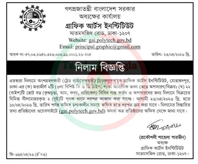 Title: পুরাতন ভবন ও গাছ নিলাম বিজ্ঞপ্তি